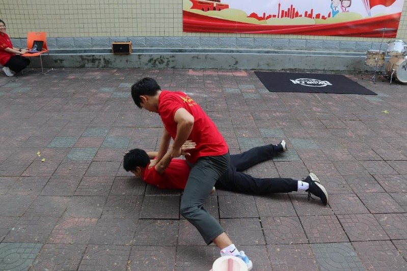 图为“梦想起航”三下乡社会实践服务队队员醒狮表演