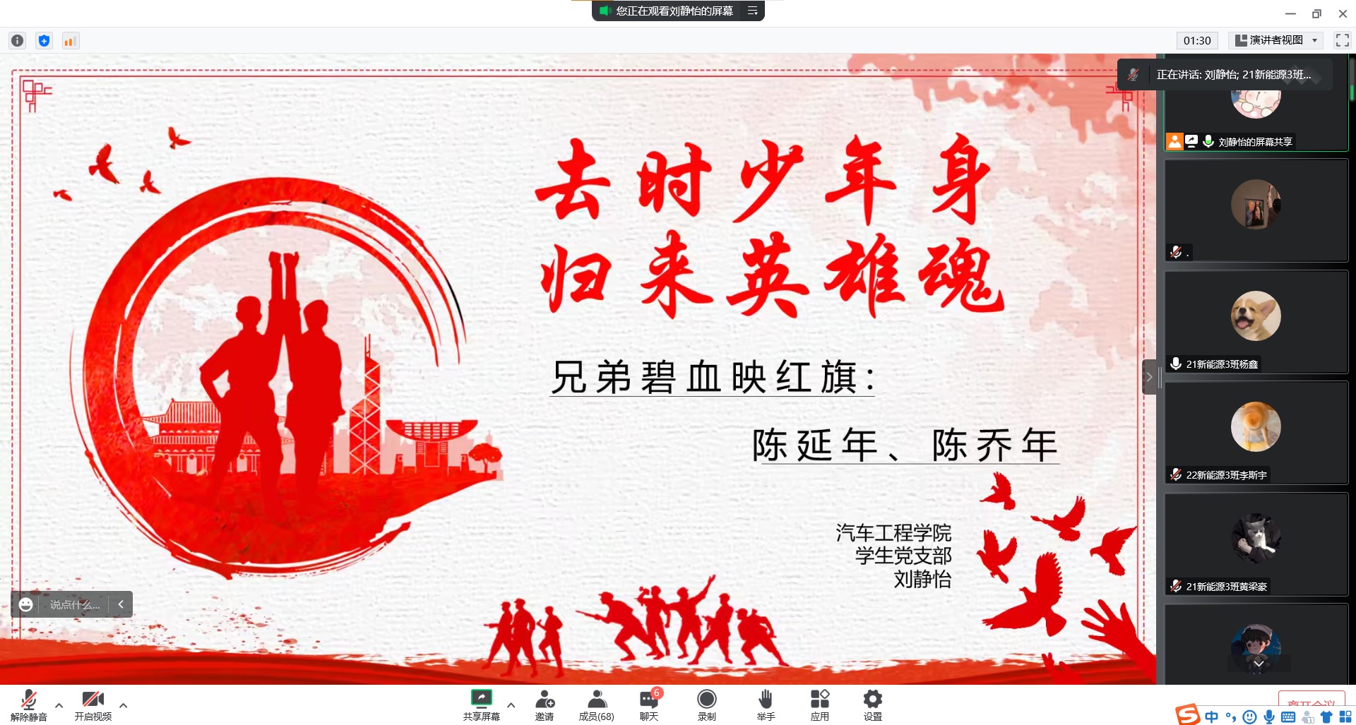 学校学生党史宣讲团成员刘静怡给21新能源3班宣讲党史故事 |