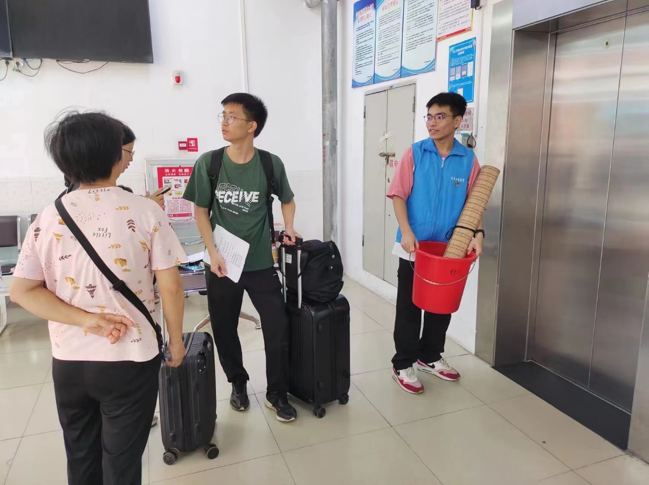 迎新当天,学生党员身穿我院志愿者马甲,帮助新生搬运行李,引导新生到达宿舍楼,2023级新同学提供热情周到的暖心服务学生党支部将新生挂钩党员组成一支志愿队伍,协助新生助班迎接并办理新生们的入学相关手续,积极做好服务工作,切实将“我为群众办实事”落实落细。在迎新活动区域,设立了活动对自己未来的大学生活的期待,对家人的祝福等等写下自己的心愿和祝福。