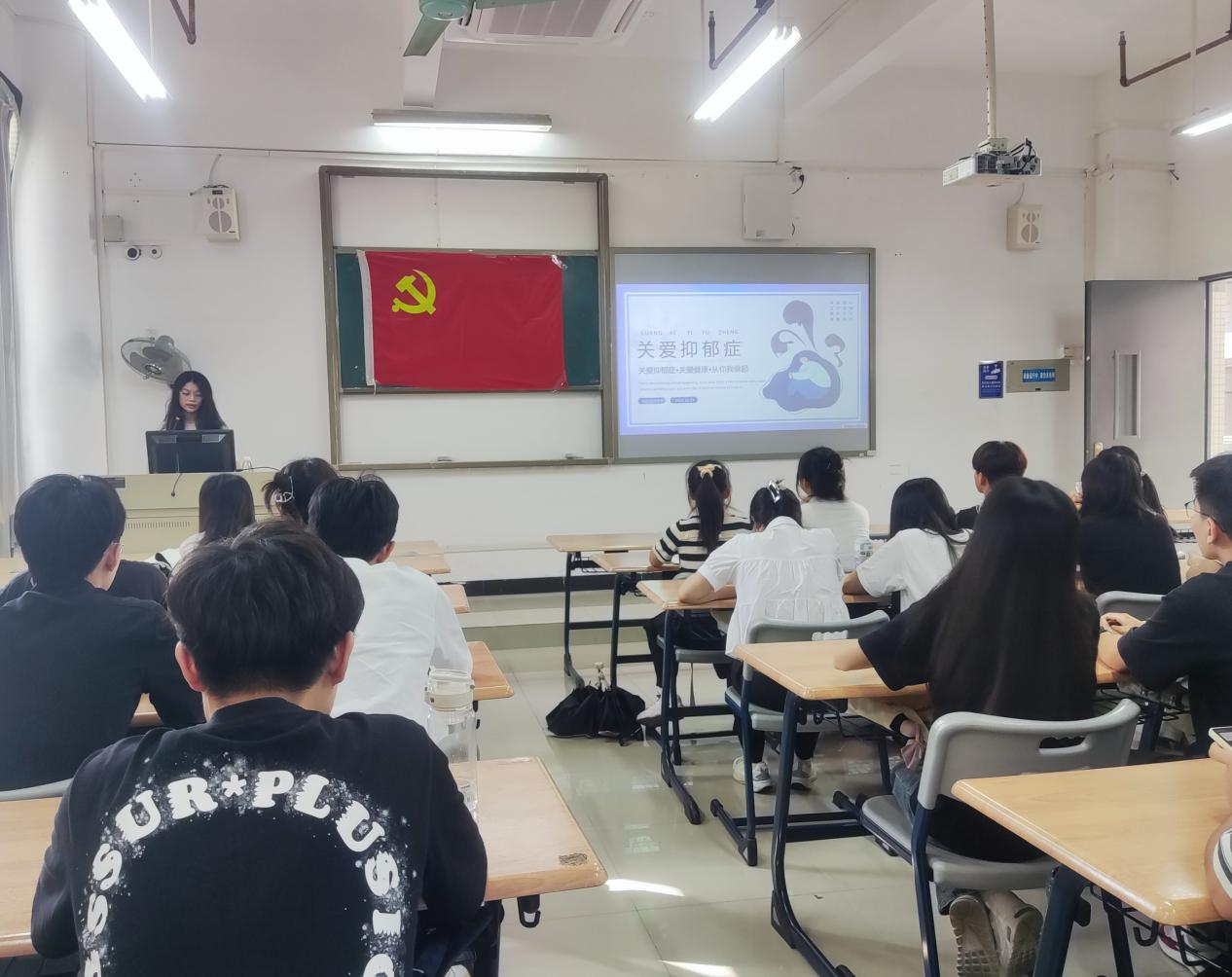 紧接着,蔡梦彤同志分享了有关抑郁症的知识,主要从了解抑郁症、抑郁症的表现、抑郁症的治疗、抑郁自评表方面展开分享。对于轻微症状的人可以通过体育锻炼治疗,而严重抑郁症的人就得通过心理治疗,所以大家要在生活中重视抑郁症,关爱抑郁症,关爱健康。