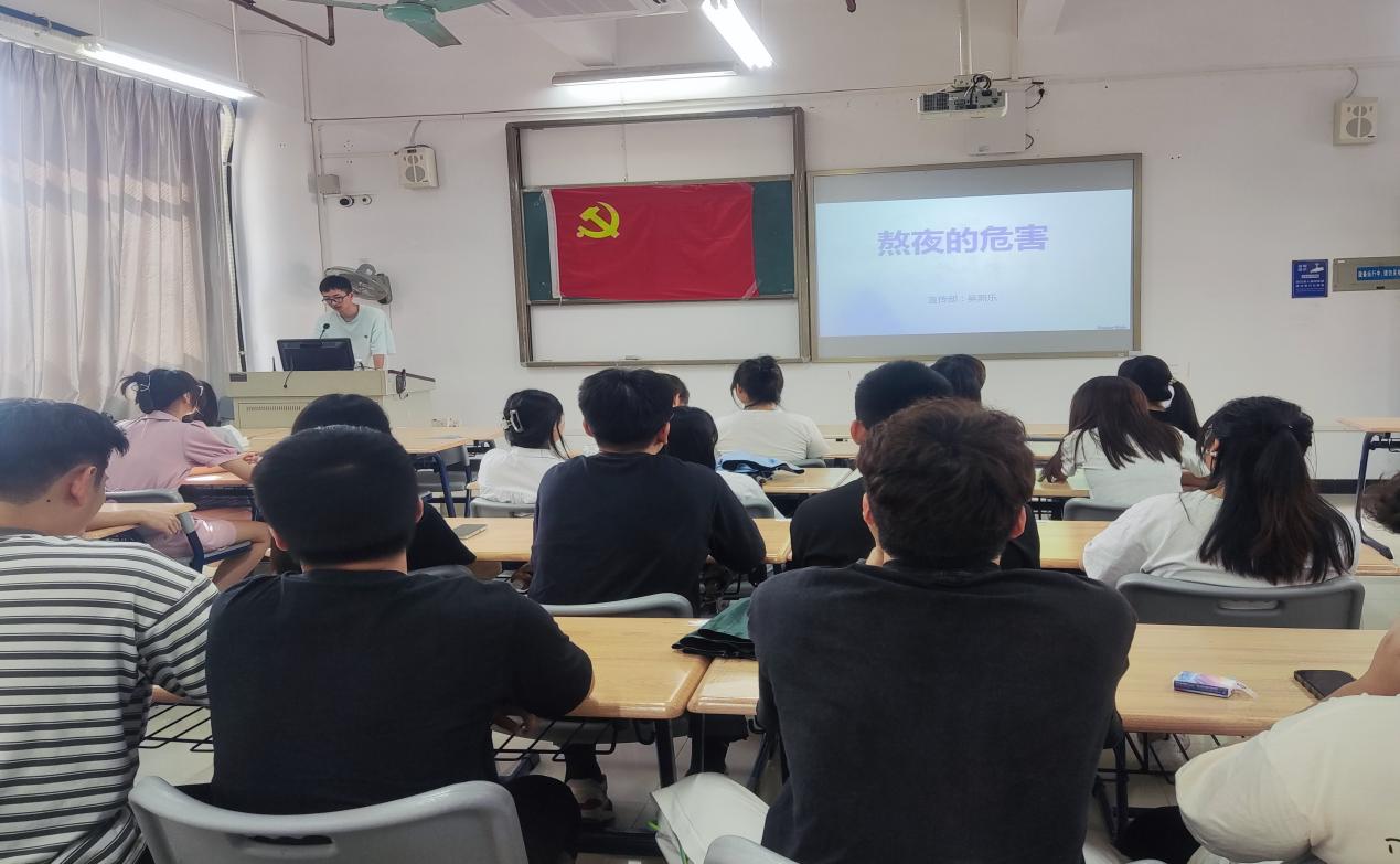 随后吴熙乐同志对熬夜的危害进行讲解,分别从熬夜对身体的危害、熬夜对大脑的危害、熬夜对健康的综合影响、应对熬夜危害的策略几个方面进行介绍。并提出要长期坚持规律的作息时间、保持积极乐观的心态、适当的运动和保持健康的饮食习惯。