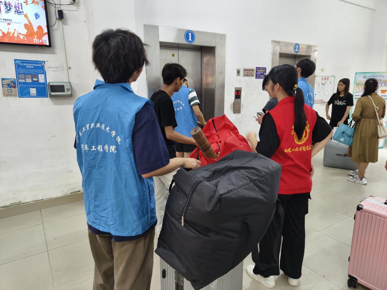 迎新现场,学生党员们身披志愿者马甲,佩戴党员徽章,以热情、饱满的精神面貌投入到迎新服务当中。尽管天气多变,但这并未令党员们的热情消减半分,他们或踊跃帮助新生搬运行李,带领新生及家长前往宿舍楼;或充当向导贴心引导新生办理入学手续;或耐心回答,为新生和家长们答疑解惑细致入微地介绍学校的布局以及相关注意事项
