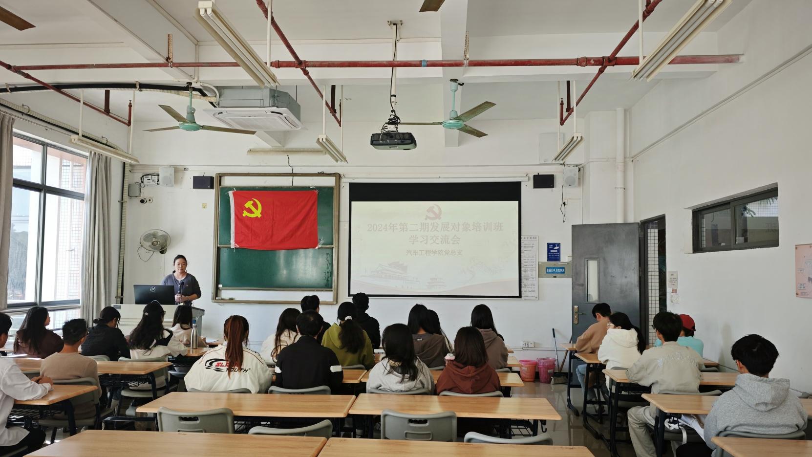 为深入学习贯彻党的二十届三中全会精神,把握习近平新时代中国特色社会主义思想,认真做好发展对象培训工作,进一步端正发展对象的入党动机、明晰党的纪律,汽车工程学院党总支于2024年11月28日下午在明德楼1区312教室开展发展对象培训班学习交流会,汽车工程学院学生党支部书记刘彩云及全体在校党员出席此次会议,会议由蔡光煜同志主持。
