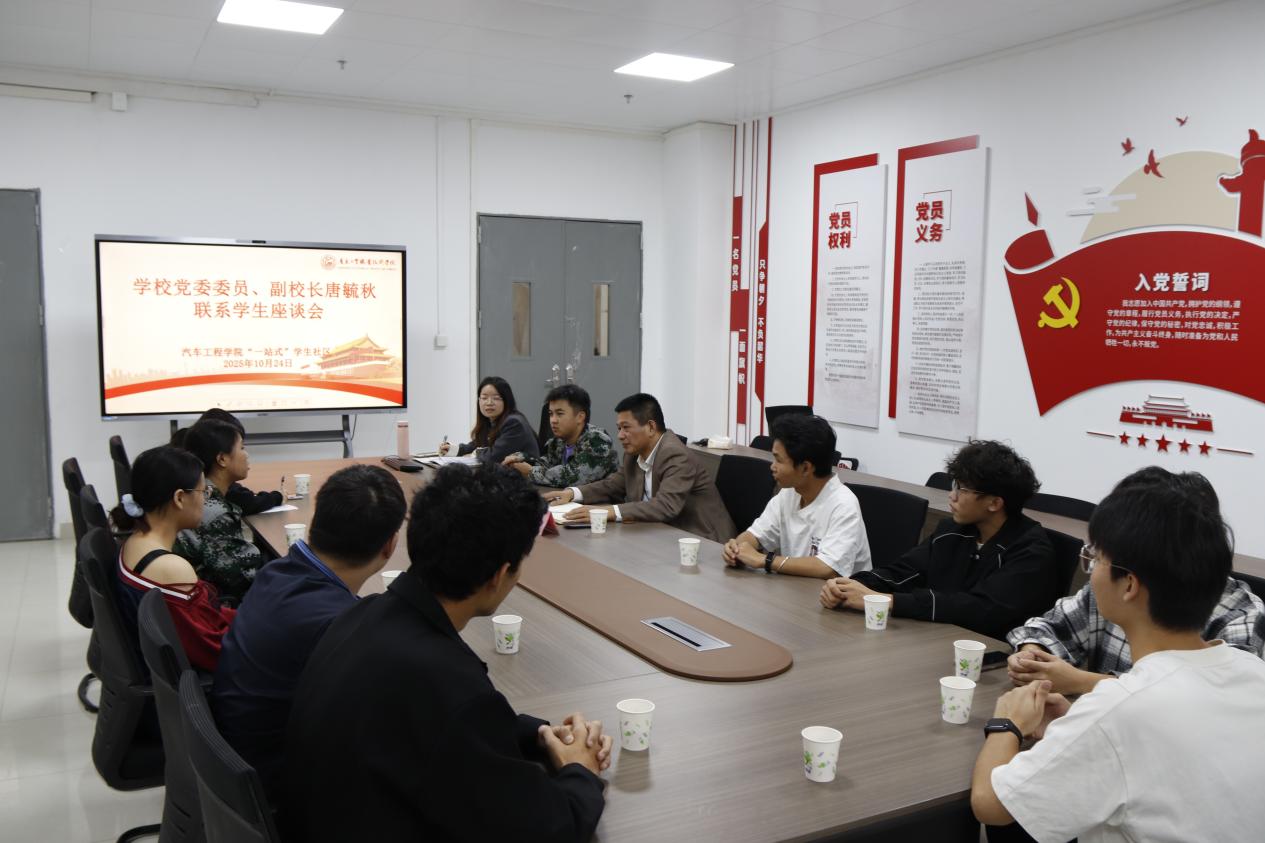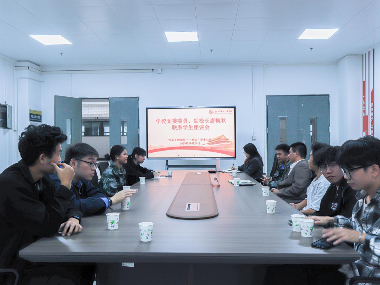 为深入了解学生学习生活情况,精准解决学生实际需求,10月24日,学校党委委员、副校长唐毓秋与汽车工程学院各年级、各专业学生代表在行知楼214室召开面对面交流座谈会,搭建起高效畅通的师生沟通桥梁。会议由辅导员钟梅主持。