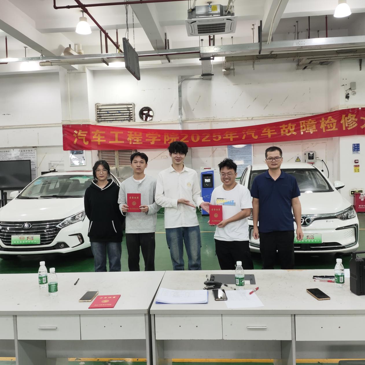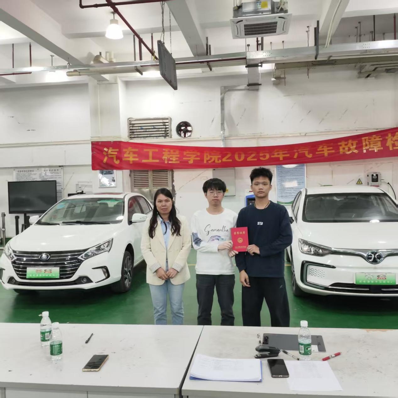 为加强汽车维修行业技能人才储备,激发学生对故障诊断技术的钻研热情,提升学生的实操应用与团队协作能力,11月11日,由汽车工程学院党总支主办、汽车工程学院新能源汽车系承办、汽车工程学院团委、汽车工程学院学生会协办的2025年汽车故障检修技能竞赛决赛在行知楼101教室举行。本次比赛由汽车工程学院专任教师黄美红、陈少伟、钟玉灵担任评委,比赛由王伟俊主持。