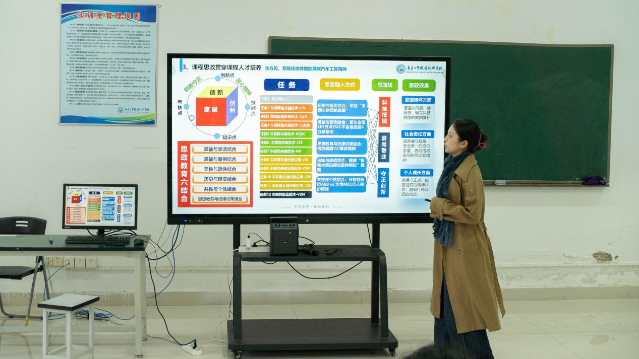 在“说课程”环节中,参赛教师从课程标准、教学内容、教学方法、评价方式等维度,深入剖析了课程设计理念和实施策略。他们通过现场演示、案例分析等方式,既展现了如何将思政元素有机融入课程教学,实现知识传授与价值引领的统一,也展现了参赛教师在各自专业课程中的特色教学与扎实的专业能力。
