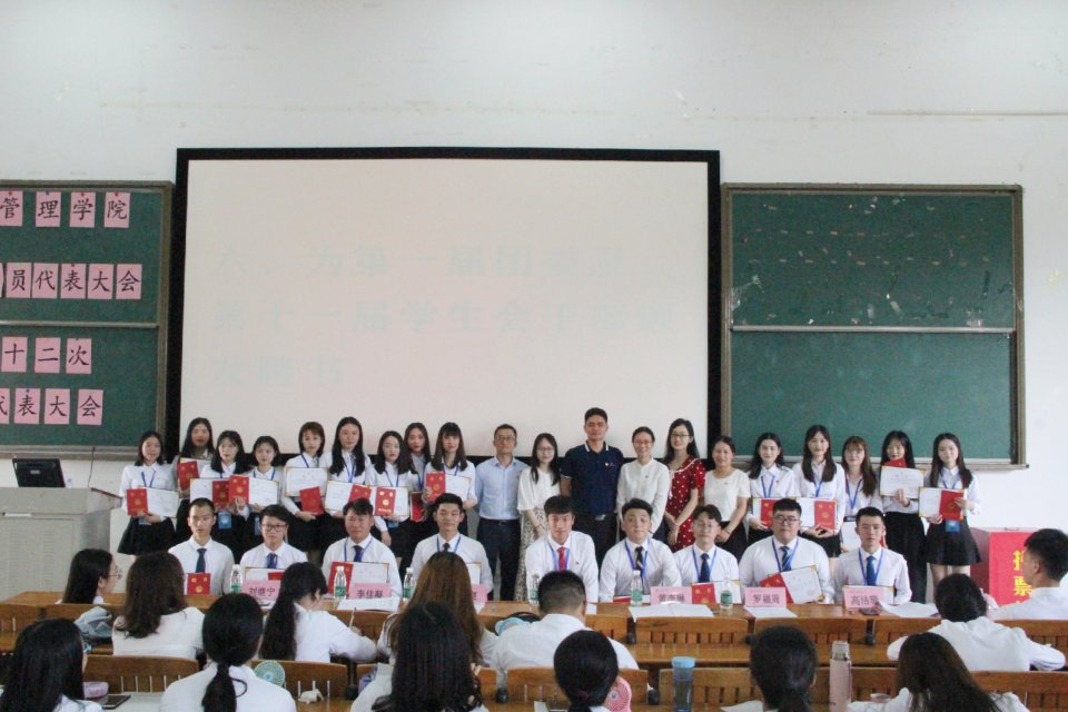 为进一步巩固和完善党领导下的“一心双环”团学组织结构,加强和规范我院团委和学生会组织工作,更好地引领青年学生成长成才,工商管理学院团委在2019年6月27日下午两点于明德楼2-104举行了工商管理学院第二次团员代表大会暨第十二次学生代表大会。出席本次大会的领导老师有工商管理学院党总支副书记谢宏祥,学工办主任兼团委书记李爽,辅导员黄李琳、罗福周、李佳凝、韩天瑶、刘继宁及工商管理学院第一届团委委员、第十一届学生委员会委员、党员代表和各团支部班级代表。