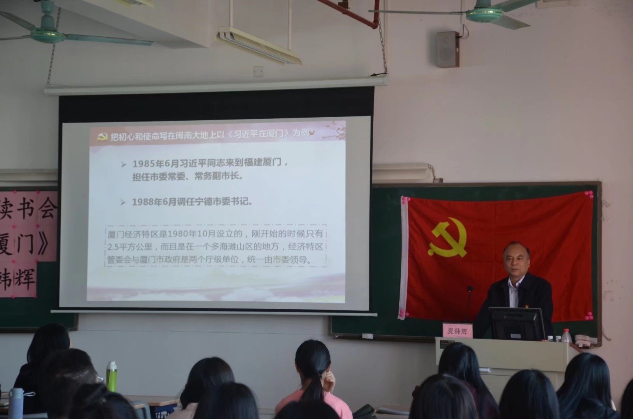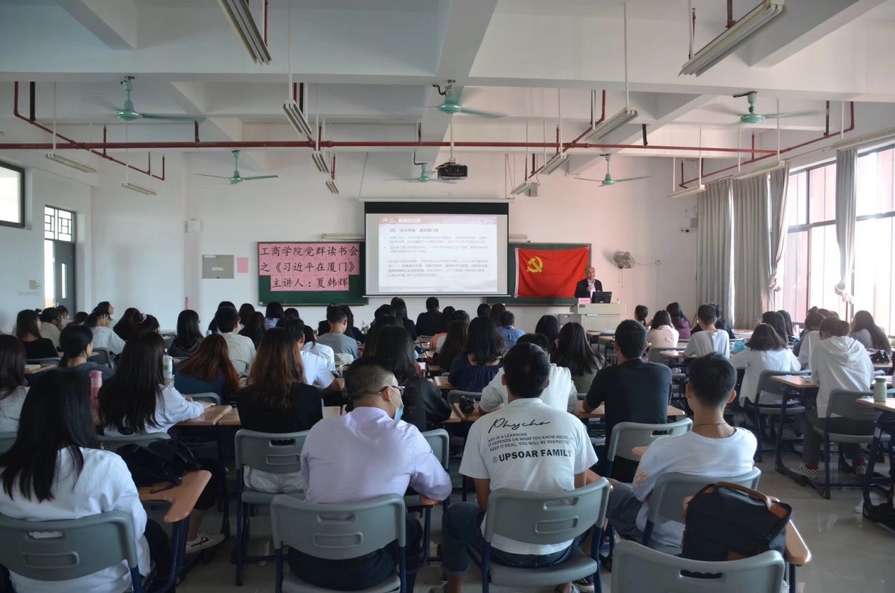 为深入学习贯彻习近平新时代中国特色社会主义思想,坚持初心,坚守使命,工商管理学院于2020年11月11日下午2点在明德楼2- 501开展了《习近平在厦门》读书分享会,主讲人为学校党委副书记、纪委书记夏韩辉,工商管理学院党总支书记周清莲、副书记谢宏祥和百余名师生党员、积极分子参加。