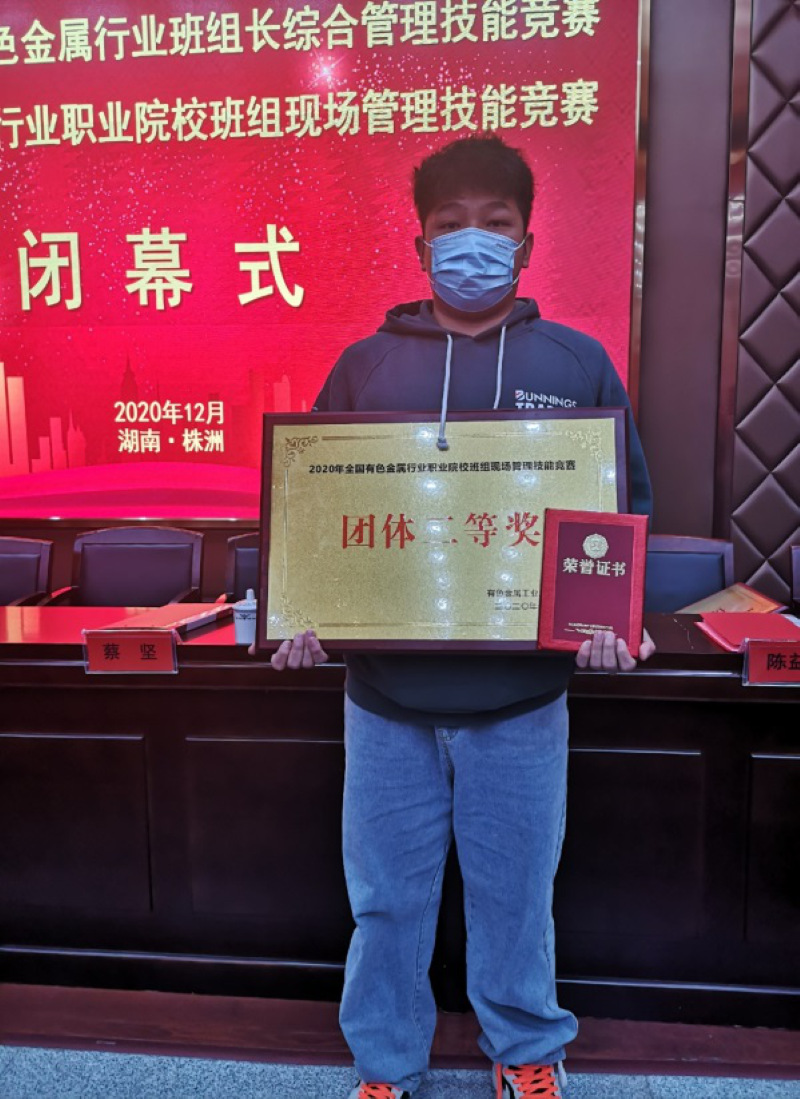 12月16-17日,由中国有色金属工业人才中心举办的2020年全国有色金属行业班组现场管理技能竞赛(学生组)在湖南株洲湖南有色金属职业技术学院举行。365官网由工商管理学院倪利老师和杨嘉伟老师指导的19级物流专业四名学生代表学校参加本次比赛,在学校及院领导的大力支持下,365官网队员不负众望,经过层层比拼和激烈的角逐,在众多参赛队伍中脱颖而出,最终荣获团体二等奖佳绩。