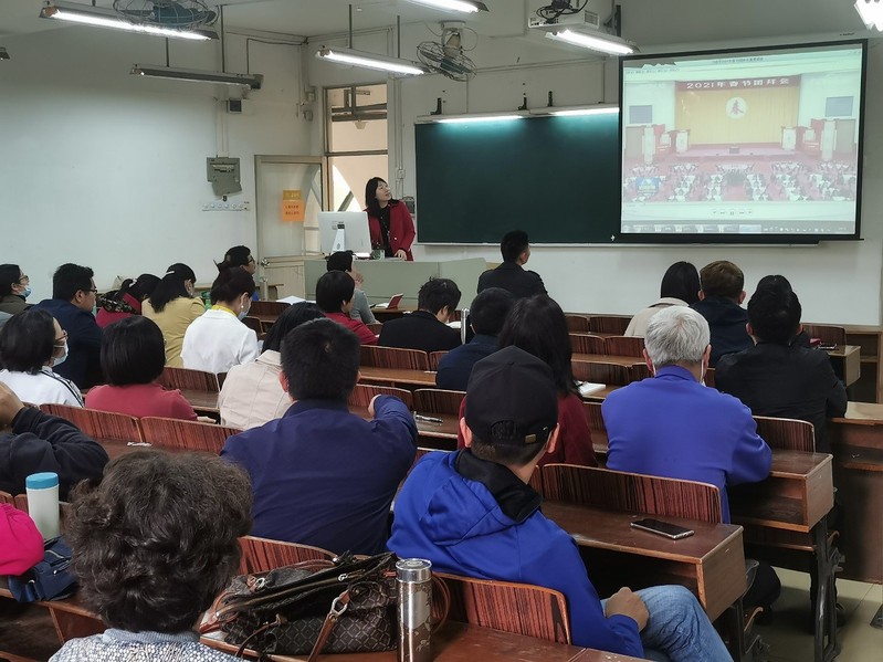 首先,由周清莲带领全体教职工学习习近平总书记2021年春节团拜会重要讲话。她提出,作为高校教师应当增强“四个意识”坚定“四个自信”做到“两个维护”,积极学习和发扬习近平总书记强调的“为民服务孺子牛、创新发展拓荒牛、艰苦奋斗老黄牛”的精神,强化工作责任心和使命感,立足岗位奋勇前进,努力实现学院教育教学发展的新突破,用优秀的业绩向建党100周年献礼。此外,周清莲强调,学院各党组织要切实履行主体责任,按学校党委全面从严治党的工作要点和学校党风廉政建设的总体要求抓好落实,全体党员同志要用政治纪律、组织纪律、工作纪律、群众纪律、生活纪律、廉洁纪律来约束自己,全体教职工要廉洁修身,以求真务实的工作作风推动学院教育教学改革发展。