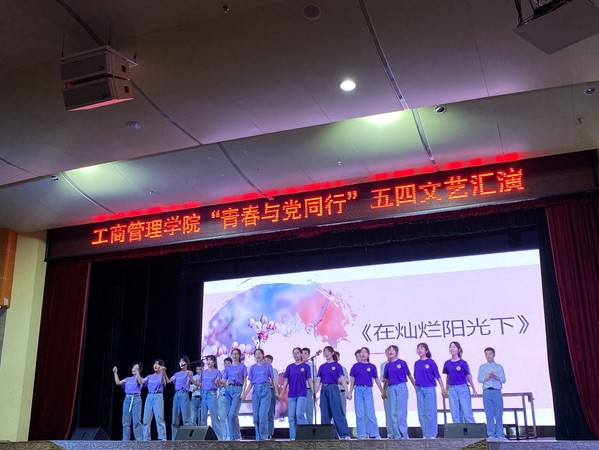 为庆祝中国共产党成立100周年,讴歌党的辉煌历程和丰功伟绩,深入学好党史、新中国史、改革开放史、社会主义发展史,进一步发扬革命传统和优良作风,激发师生爱党爱国爱社会主义的巨大热情,引导广大青年听党话、强信念、跟党走。527日晚,工商管理学院举办了“青春与党同行”五四文艺汇演活动,因疫情防控需要,本次晚会分两个校区,全程以无观众录播的方式进行,组织全学院各班团支部进行线上观摩学习。