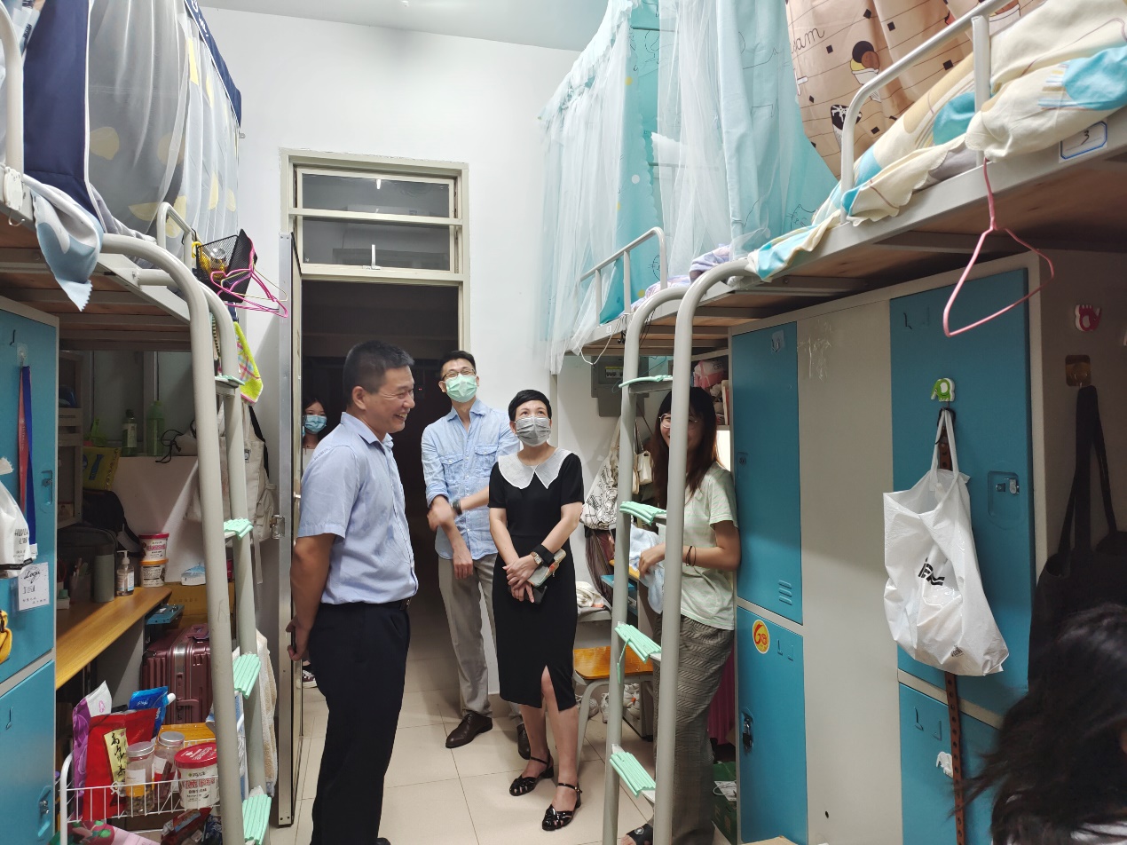 走访期间,领导们深入地了解学生们在校期间的学习、学生情况,倾听学生对学校饭堂、基础设计建设的建议及意见,并且现场协调解决宿舍空调、宿舍WiFi设施等方面的问题。