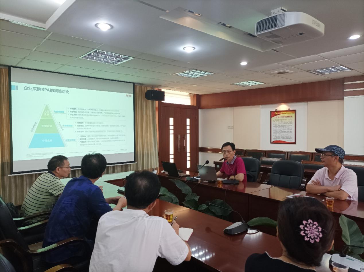 365官网工商管理学院院长邹德军介绍了当前财经类专业智能技术应用状况和工商管理学院在教学中应用这些智能技术的经验。上海艺赛旗公司广东负责人王文良介绍了RPA等智能技术和上海艺赛旗公司发展战略。广东财贸职业学院教务处负责人程玖介绍了学校情况和校校开展课程建设情况。广东财贸职业学院临时党委委员张贤基指示财经类高职专业建设应该融入智能技术,并适度超前,希望校校、校企加强合作。三方就教师培训、现代智慧财经课程开发等进行了深入研究。参加会议的还有广东财贸职业学院部分财经类二级学院负责人。