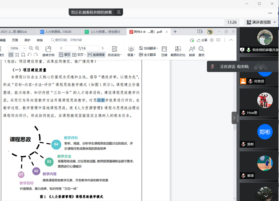 会上,何美贤表示,商业服务系教师利用假期,将党史学习教育作为教书育人的重要抓手,深度挖掘党史中蕴含的思政元素,并将其巧妙融入课程内容的设计和实施,推进课程思政教学改革,本次会议是促进课程思政建设的一次交流研讨。