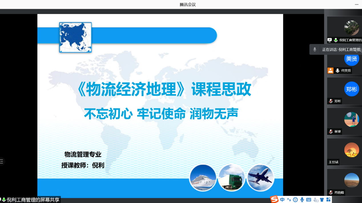 倪利则向大家展示了从党史学习教育中挖掘课程思政元素的案例,她结合所授课程《物流经济地理》的教学内容和课程特色,将党史教育中可挖掘的思政点融入合适的课程内容中,借助丰富的教学案例,对学生进行思政教育,做到牢记使命,润物无声。