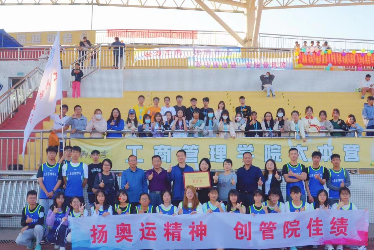 开幕式运动员方队入场时,工商管理学院运动员代表队身穿白色T恤,手挥蓝色花球,伴随着嘹亮的口号“管院魅力,神采奕奕,斗志昂扬,争创辉煌”,队员们伴奏着“我相信”的音乐英姿飒爽跳起了青春活力的舞蹈,成为了本次运动会开幕式方队中一道亮丽的风景线。