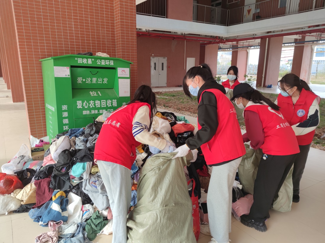 为积极积践行“雷锋精神”,提倡绿色低碳的生活方式,3月1日,青年志愿者协会工商管理学院分会在5栋、9栋和16栋宿舍楼绿宝处开展“衣份爱心,温暖你我”的旧衣回收活动。在这春意盎然的季节里,志愿者们为爱而来,把全心全意为人民服务的“雷锋精神”和循环利用、低碳生活的环保理念带到了校园。