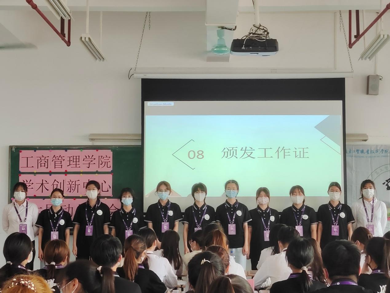 大会进入到最后一项议程,指导老师潘丽莎为学生干部佩戴工作证,学生干部为新一任学生干事佩戴工作证,象征着学术创新中心有了新一届的传承!