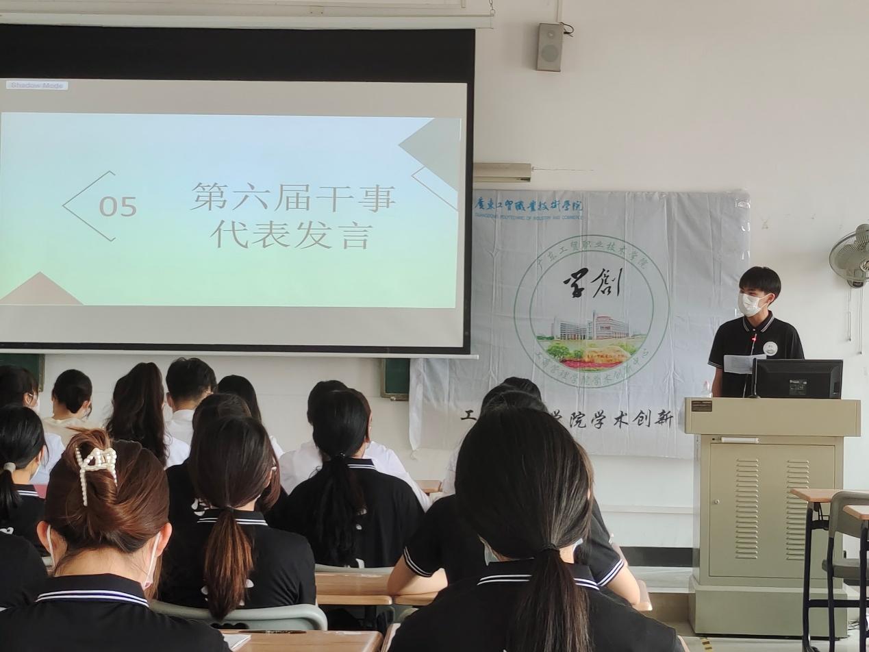 新成员代表梁至炫发言,他表示加入到学创这个大组织,让他结识到更多的新朋友、历练了自己的工作能力和加强了与伙伴们的沟通,学会了勇敢地去表达自我,使得他能更自信乐观地去面对生活中的人和事。