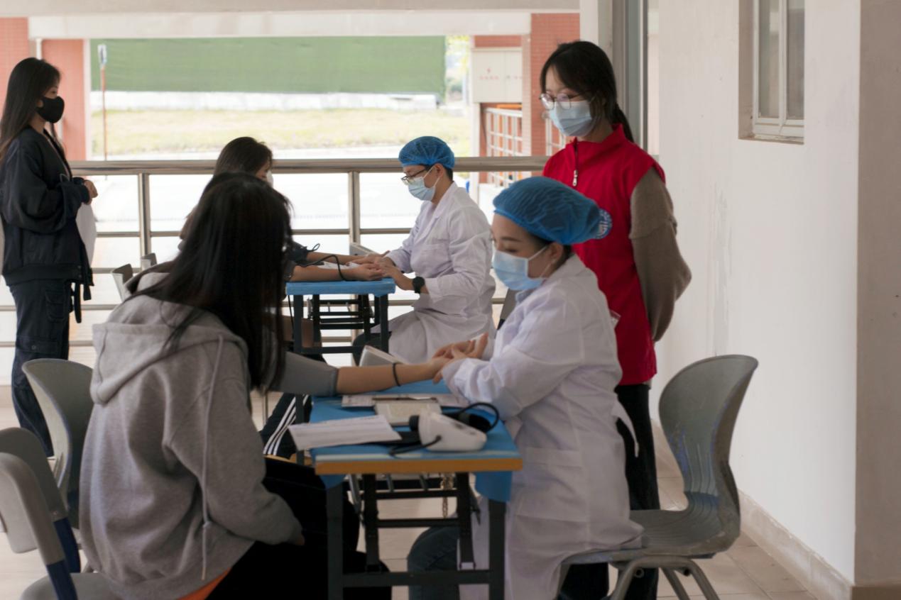 筑牢健康防线,守护身体健康。本次新生体检设有身高体重测量、血压脉搏检测、视力检测(辨色力)、抽血、X线胸片以及内外科常规检查等多个项目。在各项检查中都能看到志愿者们的身影,他们身穿红色马甲,遍布各个体检地点,积极配合医护人员的工作,耐心地引导新生进行各项体检,努力维护现场秩序,大大提高了工作效率。志愿者们在体检过程中忙碌的身影,也成为校园中一道靓丽的风景。