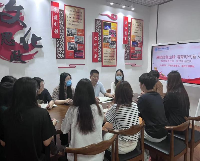 为深入学习贯彻习近平新时代中国特色社会主义思想主题教育,推动主题教育走深走实,促进师生交流、解决学生在校期间遇到的问题,助力学生成长成才。工商管理学院于5月17日晚,在文化思政工作室举办了主题为“赓续红色血脉,培育时代新人——校领导进社区,面对面话成长”师生座谈会。学校党委委员、副校长唐毓秋与工商管理学院辅导员欧阳翠婷以及十余名学生干部、党员代表进行面对面交流。