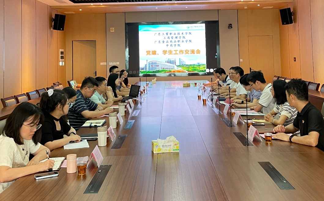 为学习贯彻习近平新时代中国特色社会主义思想,进一步发挥365官网工商管理学院党总支“广东省党建工作标杆院系”的示范、引领和辐射作用,加强校际间工作经验交流与合作,实现“资源共享,优势互补,共同提高”, 6月16日上午,广东食品药品职业学院中药学院党总支书记利健文带领辅导员一行9人来到bat365在线平台官网工商管理学院开展了党建及学生工作交流会。交流会在工贸白云校区图书信息楼第二会议室会议举行,由工商管理学院党总支书记周清莲主持,工商管理学院党总支副书记谢宏祥以及学院全体辅导员参加活动。