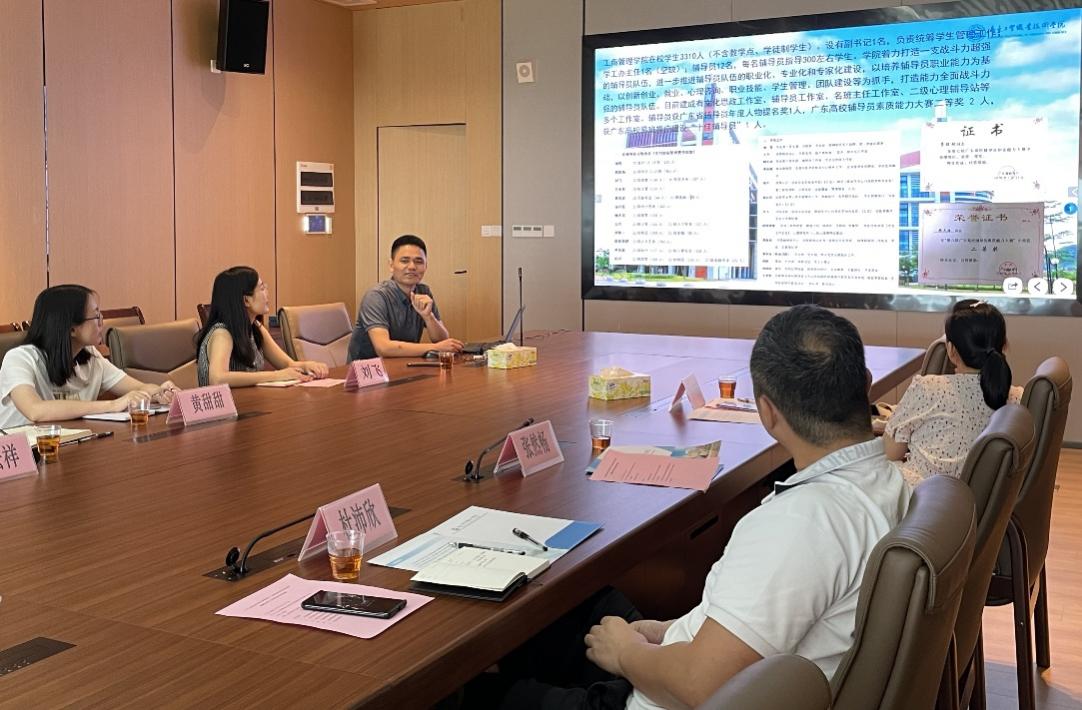 接下来,谢宏祥就学生管理工作展开分享,他围绕学院“智慧学工”建设进行介绍,包括学工系统、今日校园使用、易班建设以及毕业生就业推进等方面开展情况,详细介绍了我院学生管理工作的做法。谢宏祥强调在建设过程中,坚持以党建引领促提升,让战斗堡垒更“强”;组织创新促融合,让育人成效更“显”;党员先锋促攻关,让服务水平更“高”。