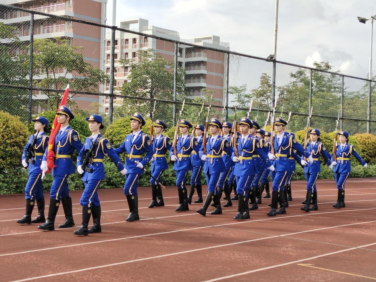 仪式开始,国旗护旗队迈着铿锵有力的步伐,昂首阔步,护卫五星红旗走向升旗台。随着高亢雄壮的国歌响起,鲜艳的五星红旗映着朝阳徐徐升起,迎风飘扬,全体师生面向国旗、同唱国歌,表达对党的深切祝福、对伟大祖国的崇高敬意。