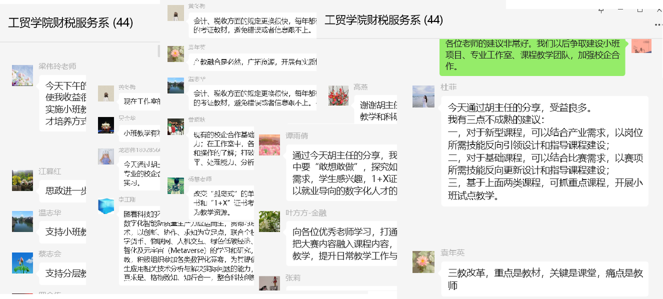 本次研讨会财税系全体教师进一步理解了《通知》精神、知晓标杆院校的教学改革模式,明确了未来工作努力方向。