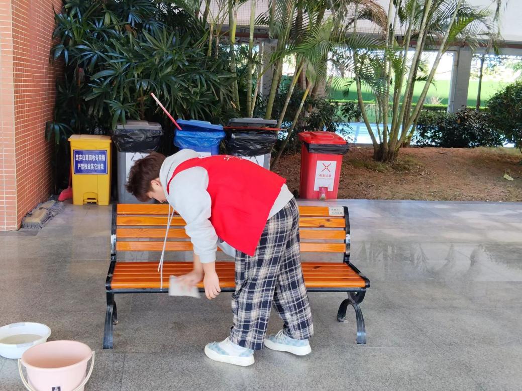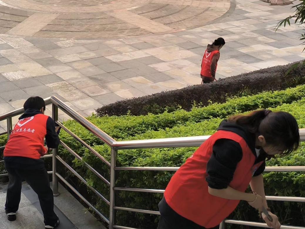 负责明德楼区域的志愿者们分工明确,他们认真打扫走廊、楼梯过道、架空层公共设施等,将纸屑、灰尘一扫而空,为教学楼的每处角落注入一份清新与活力。整个过程体现了志愿者们团结进取、积极向上的精神风貌。