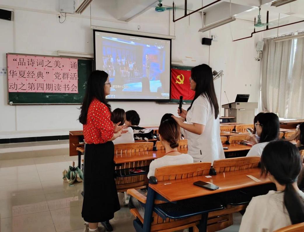总第71期:品诗词之美 诵华夏经典。3月28日晚,由林紫菁和彭芷晴两位学生党员带领开展以学习习近平总书记引用的诗词典故为内容的第一期读书会。通过观看《中国诗词大会》、飞花令等形式带领大家走进诗词的世界,一起欣赏古代文人优美的辞藻,感受诗词营造的意境,理解诗人的思想精髓。