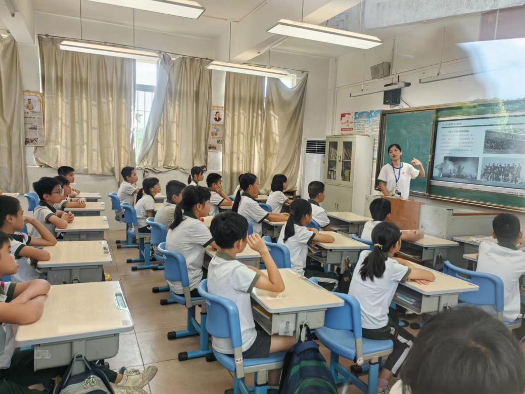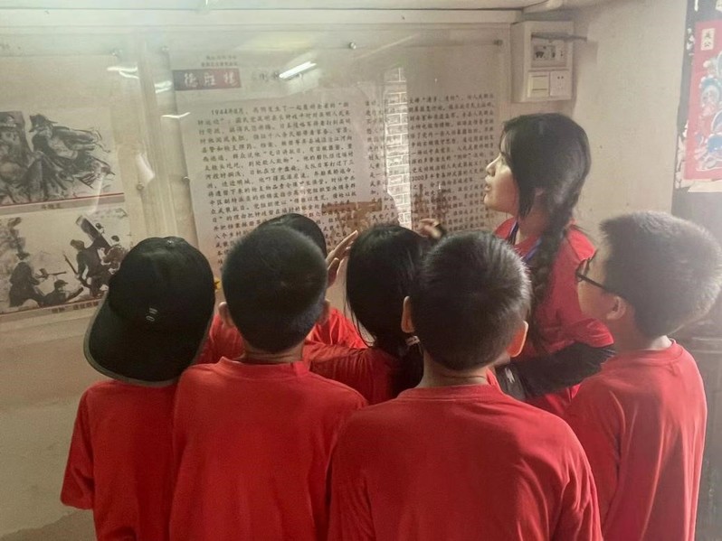 此外,队员们前往合水千禧小学开展关于德胜楼历史的义教活动,在课堂上向孩子们细致讲解德胜楼的作用和德胜楼的红色故事等内容,孩子们专心致志地听讲,沉浸其中。在他们的眼中,充满对德胜楼历史的好奇,对先辈的崇敬。课程结束后,队员们带领着孩子们去到实地参观德胜楼,将这里的红色文化传递给祖国新生的花朵,在孩子们心中埋下一颗红色的种子,等待着种子扎根发芽,一路生花。