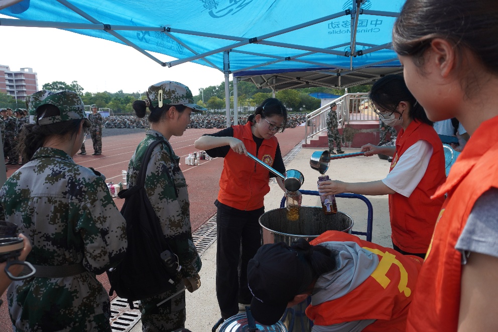 本次军训送花茶志愿服务活动,是学生党员们深入群众、服务群众的生动实践。党员志愿者们用默默的坚守和细微的关怀,生动诠释了共产党员的责任与担当,不仅确保了军训工作的顺利进行,更让初入大学校园的新生们增强对党组织的亲近感与向心力。这份烈日下的温情守护,也必将激励新生们以更饱满的热情投入到未来的学习和生活中去。