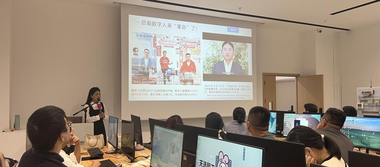 谭雨倩主讲的《AI数字人与AI创作工具应用》课程,从企业营销痛点切入,深入浅出地解析了AI数字人的发展脉络与应用场景。课程注重实战,学员们在她带领下,运用即梦、飞影、剪映等AI工具,成功走通了从脚本生成到语音配置的全链路创作流程,实现了企业专属宣传视频“从0到1”的现场生成,生动展现了AI为内容创作带来的效率革命与创意飞跃。