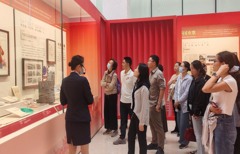 在红色歌曲版本专题展馆内,学院党总支书记周清莲现场开展“音乐里的红色记忆”微党课”。她以红色歌曲为“活教材”,带领党员在旋律与歌词中追溯党史、感悟初心,让主题党日“声”动鲜活。“啊亲爱的朋友们,创造奇迹要靠谁?要靠我要靠你……这首《年轻的朋友们》为什么能跨越代际、振奋人心?”周清莲现场抛出问题,引导学生党员思考音乐与时代的“交响”,激发奋进担当的“青春共鸣”。