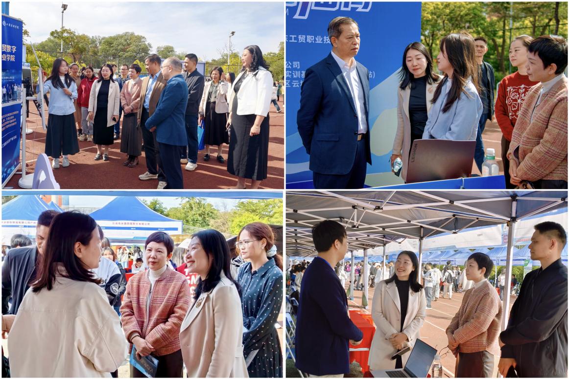 招聘会现场的人流中,关怀与期许交织。省、校各级领导循着展位逐一走访,细致询问企业招聘动态,为就业服务“把脉支招”;工商管理学院领导班子与教师团队围在展位前,和企业代表拉起“家常”——从岗位专业要求、薪酬体系细节,到人才培养与产业需求的契合点,再到对本院毕业生的能力评价与后续招聘计划,每一个问题都紧扣学子就业核心关切。这份“零距离”的现场指导,既让企业感受到学校深耕校企合作的诚意,更让求职学子心头暖意涌动,真切体会到“后盾在前”的踏实。