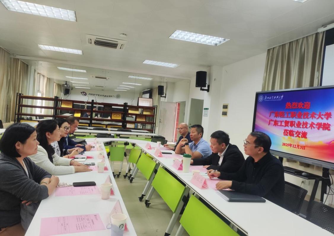 为推动专业建设与人才培养模式创新,2025年12月3日,工商管理学院副院长胡建平带队,大数据与会计专业负责人杨慧(教)、金融科技应用专业负责人叶方方等一行前往广州职业技术大学,围绕专业调整、升本规划、校企合作、课程建设等核心议题展开专题研讨。