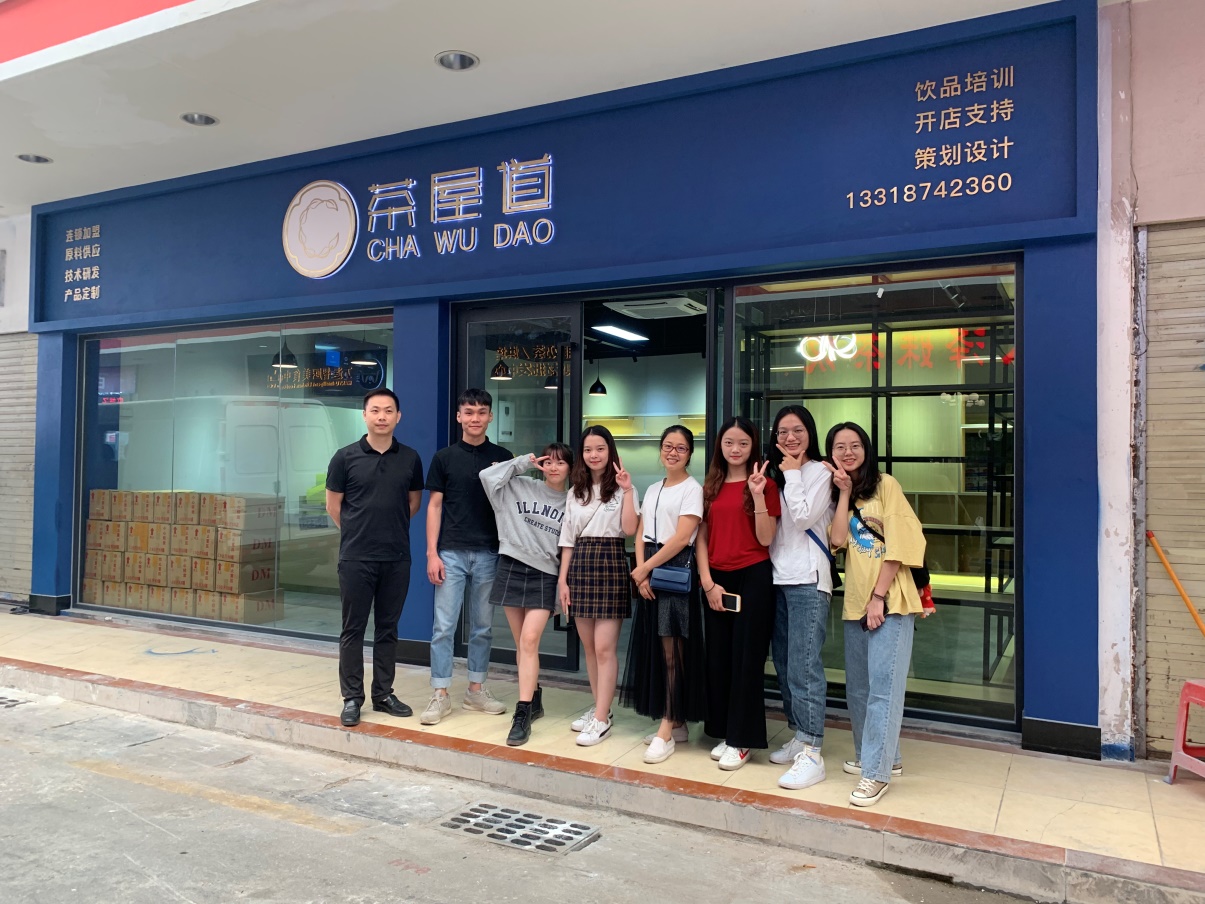当日早上十点左右,我们在梁老师的带领下,先参观了公司旗下一个奶茶品牌终端门店样板,并向同学们介绍了终端门店提供的服务,包括产品定制、饮品培训、开店支持和策划设计等业务,方便创业者的进入。