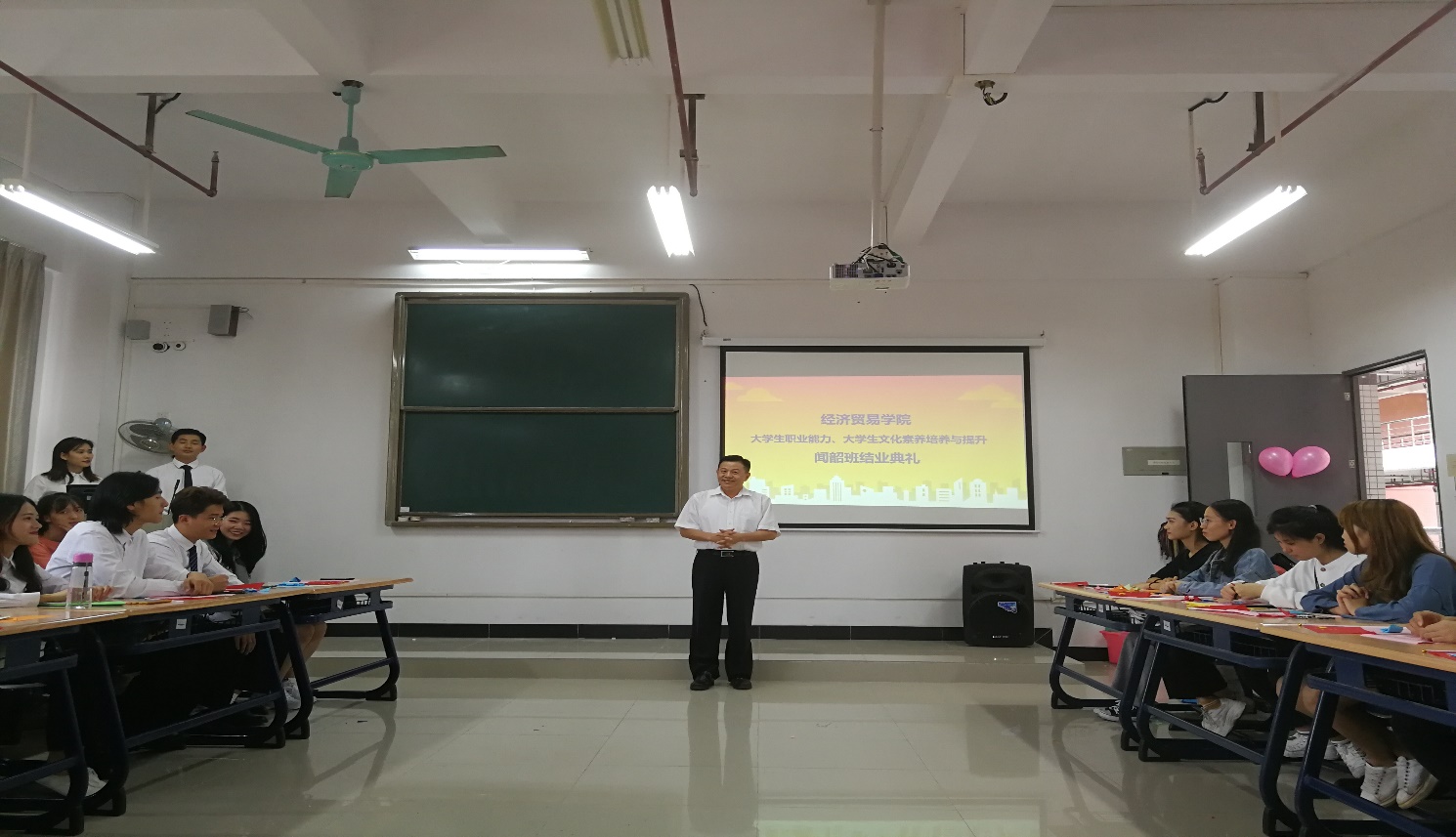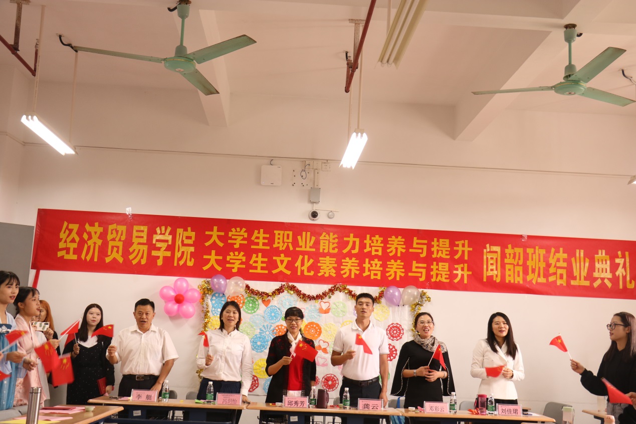 2019年10月31日下午,经贸学院“闻韶班”结业典礼仪式在明德楼1-514正式拉开了序幕,出席活动的有经贸学院院长邱秀芳、党总支副书记龚云、办公室主任邓彩云以及骨干教师李艇、刘佳珺,出席典礼的还有广州雇者品牌咨询有限公司高级培训主管冯玥怡女士以及闻韶班52名同学。
