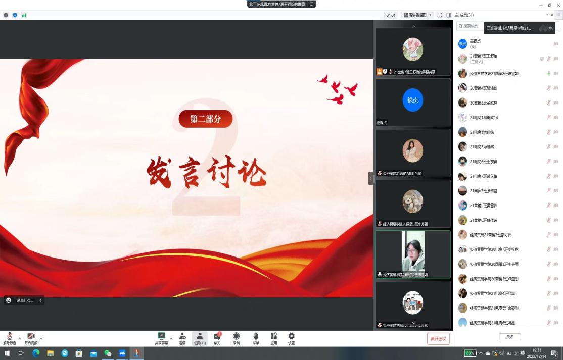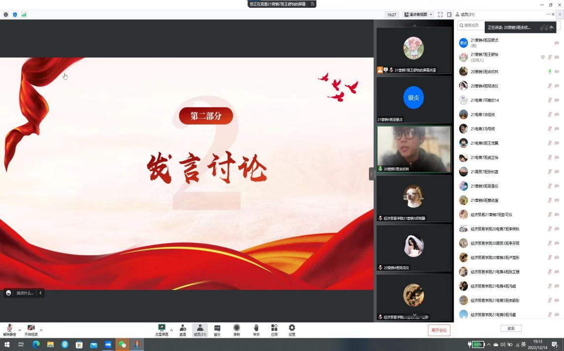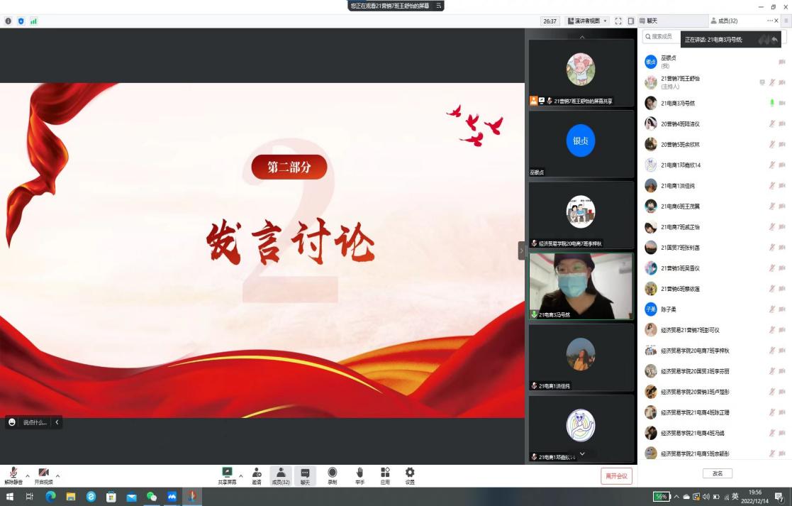 21营销7班王舒怡同学组织学习党的二十大精神