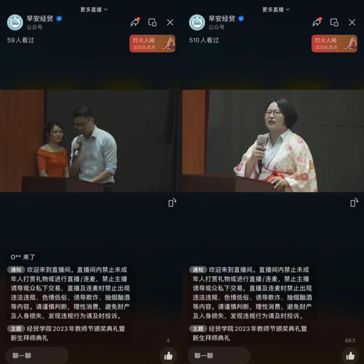为共享老师们的荣耀时刻,现场以2023级新生为代表的观众超200人。线上平台全程三个机位的同步直播,也吸引了近1000人次的在线观看及点赞。