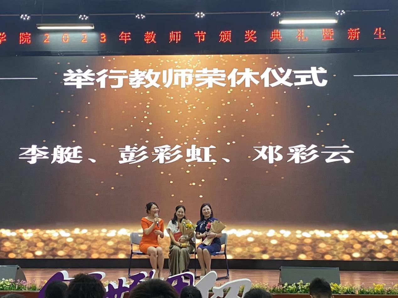 之后,经贸学院为荣休教师举行了荣休仪式。彭彩虹、邓彩云老师作为代表接受了采访。在采访中彭彩虹老师表示,之所以自己现在仍朝气蓬勃,就是因为能和学生们在一起;邓彩云老师也分享了自己关心学生、帮助学生使学生病情得到痊愈的故事。两位老师的事迹也感动了台下的所有观众。在执教生涯中,他们默默无闻奉献智慧,孜孜不倦耕耘心田。他们为学校发展,学生成才贡献了力量,奉献了青春年华。