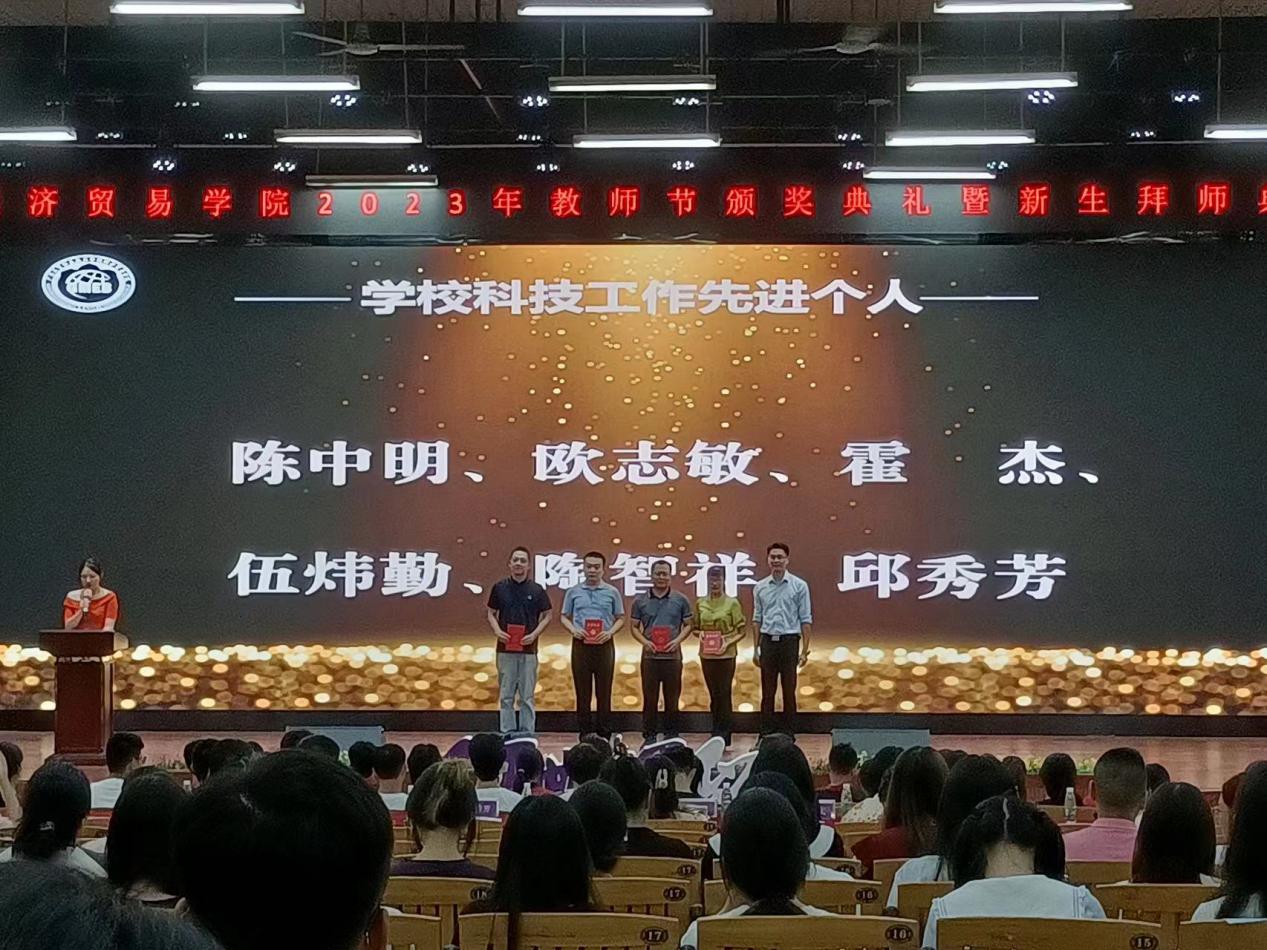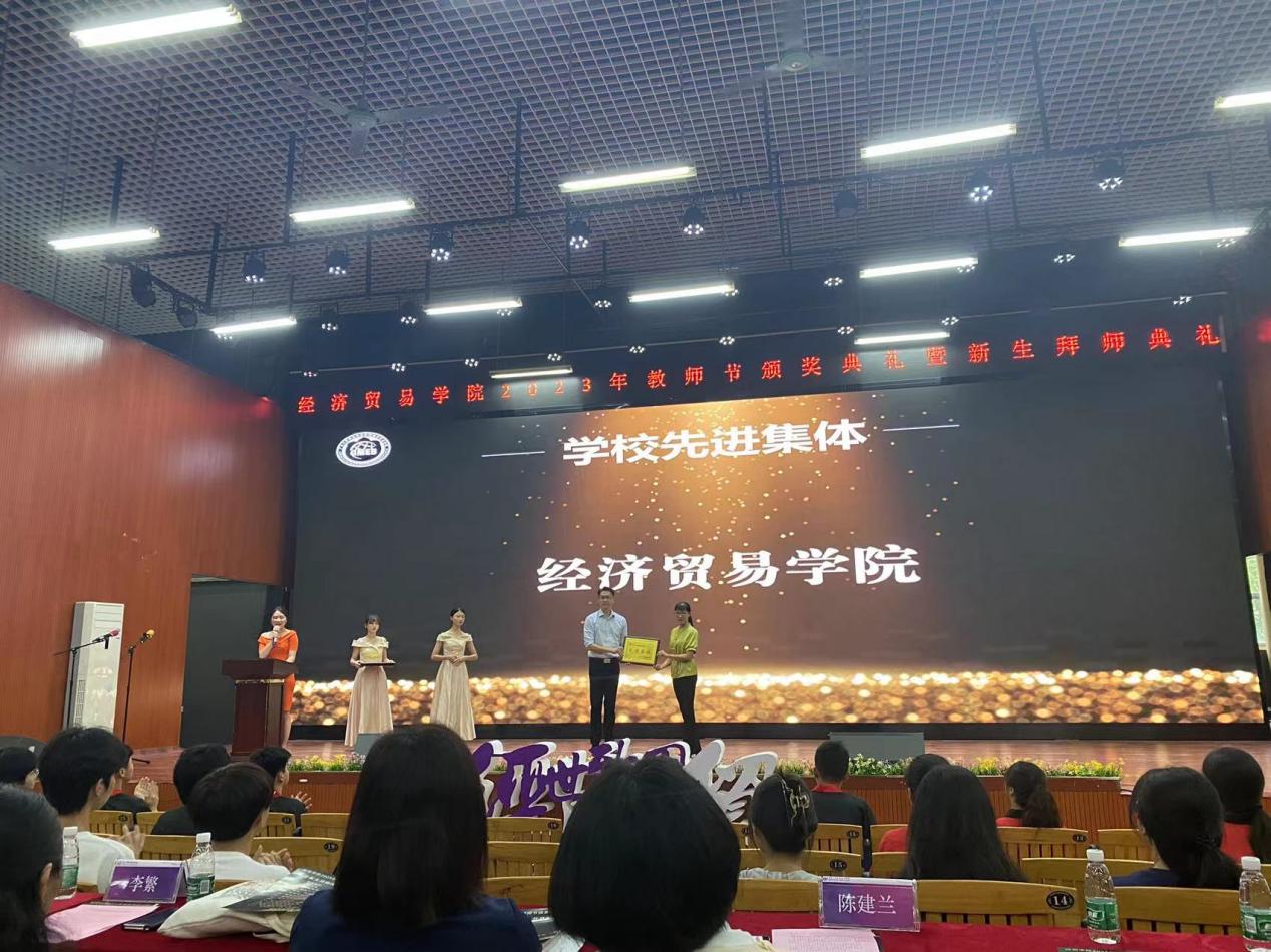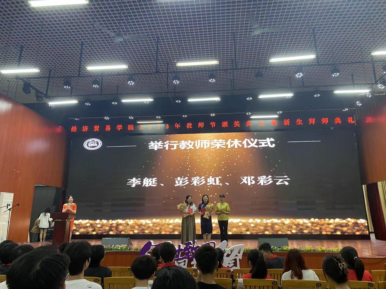 又是一年丹桂飘香时,又是一年春华秋实季。一支粉笔,两袖微尘。三尺讲台,四季耕耘。在这宜人的秋色中,全国第39个教师节如期而至。为深入学习贯彻党的二十大精神,全面贯彻党的教育方针,聚焦师德建设月“躬耕教坛,强国有我”主题,经济贸易学院于9月14日在白云校区举行了一场盛大的教师节颁奖典礼暨新生拜师典礼。本次典礼采用线上、线下相结合的方式,通过实时直播让未能现场参加的师生一同感受典礼的氛围。经贸学院党总支书记李繁,院长邱秀芳及全体教师出席本次典礼。