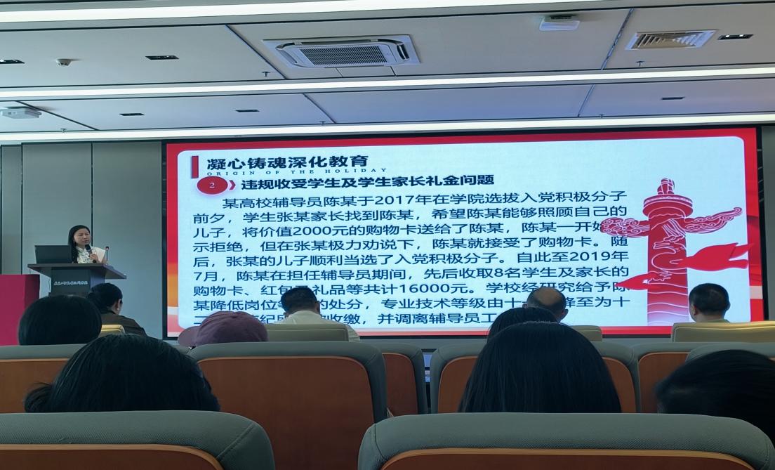 为推动深入贯彻落实中央八项规定及其实施细则精神精神学习教育走深走实,2025年9月2日下午,经济贸易学院教师第一党支部在博学楼629会议室开展“以案为鉴”中央八项规定精神专题警示教育。会议由经济贸易学院教师第一党支部书记廖晓虹主持。