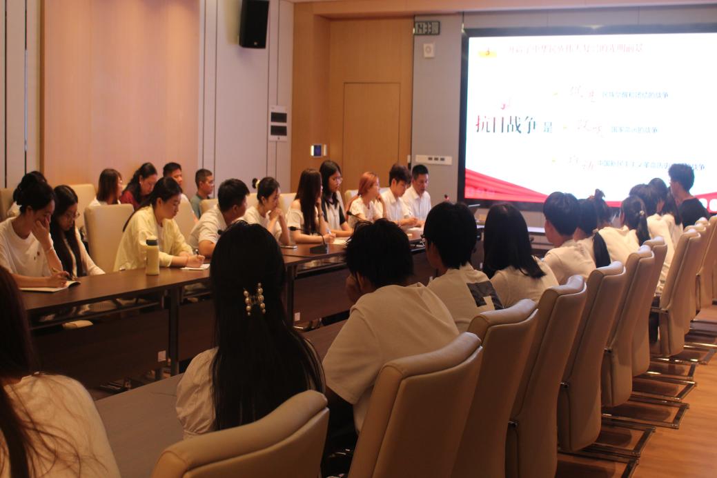 为纪念伟大抗战精神,引导青年大学生铭记历史、坚定理想信念,9月23日,学校党委委员、副校长唐毓秋在博学楼627会议室,以“纪念抗战胜利 坚定民族信念”为主题,为经济贸易学院与应用外语学院师生代表讲授了一堂深刻而生动的思政课。