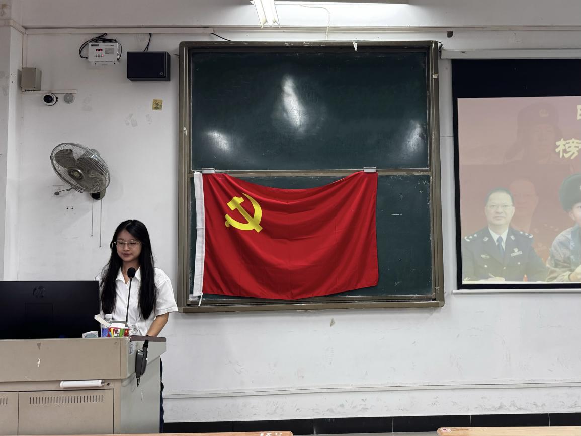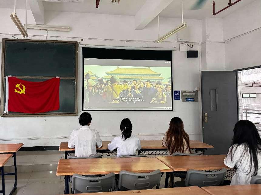 活动伊始,全体党员集中观看爱国影片《我和我的祖国》。影片以七个历史瞬间,展现普通人与国家命运的紧密联结,党员们深刻体会国家发展与个人奋斗的同频共振,民族自豪感与时代责任感进一步增强。随后,党员们齐声合唱《我和我的祖国》,激昂旋律与真挚歌词抒发对祖国的深情,凝聚美好祝愿,展现青年党员昂扬风貌。“时代楷模——榜样的力量”学习环节中,学生党员黄烁娜带领学习英雄人物的先进事迹,以楷模坚守初心、无私奉献的精神为镜,引导党员践行使命、主动担当。活动最后,党员手持小国旗合影,鲜红国旗与真挚笑容相映,传递对祖国的生日祝福与跟党走的坚定决心。