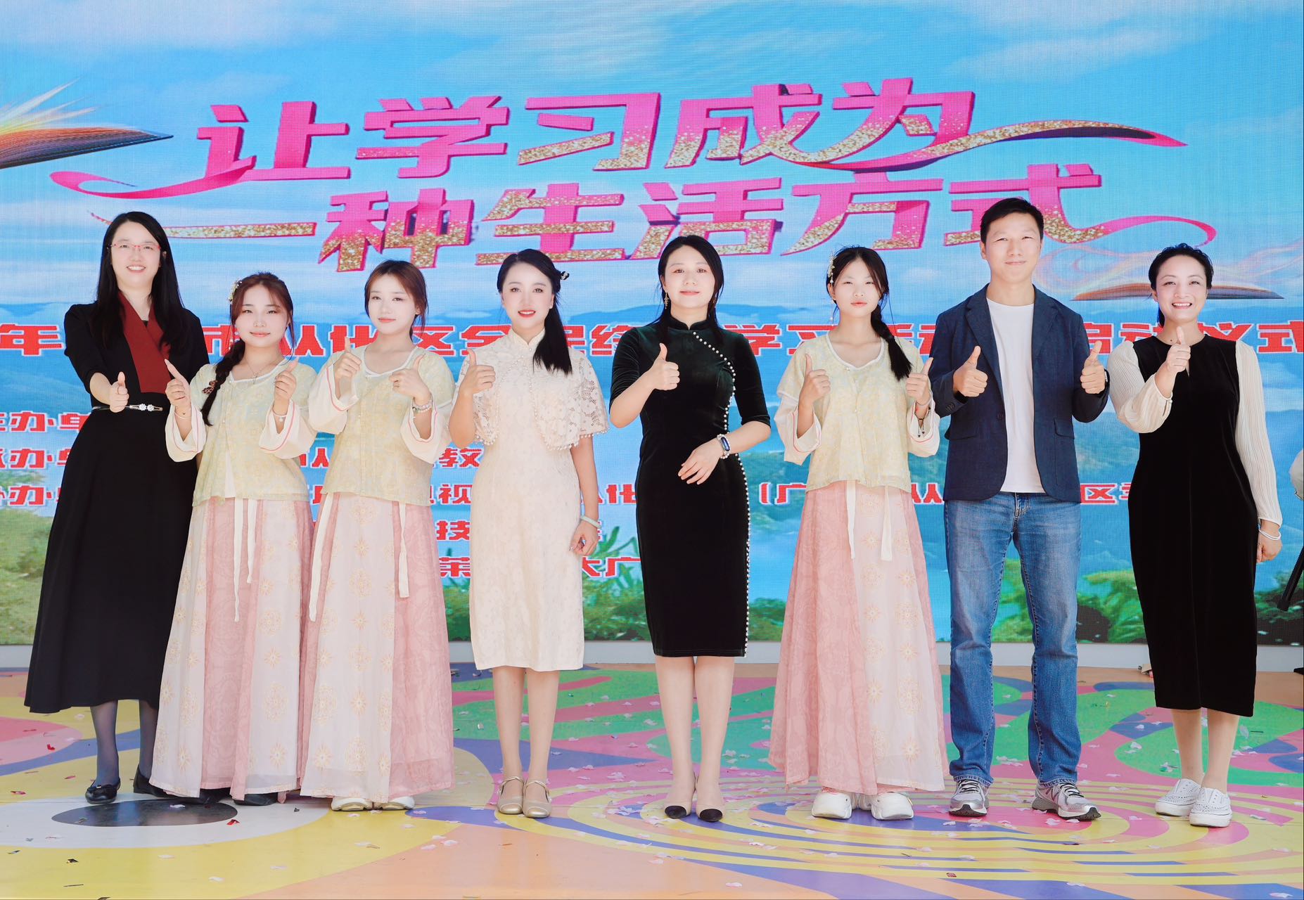 本次启动仪式由从化区人民政府主办。仪式现场,经济贸易学院通过视频展示广东省继续教育质量工程“从化县域品牌社区学习中心”项目研究实践成果,生动呈现品牌社区教育成效,传递全民终身学习理念。黄诗媛、刘佳珺老师带领学生演绎的文艺节目,既展现了学院在社会服务领域的扎实成果,又以创新形式传递传统文化魅力,有效提升了活动的社会影响力。