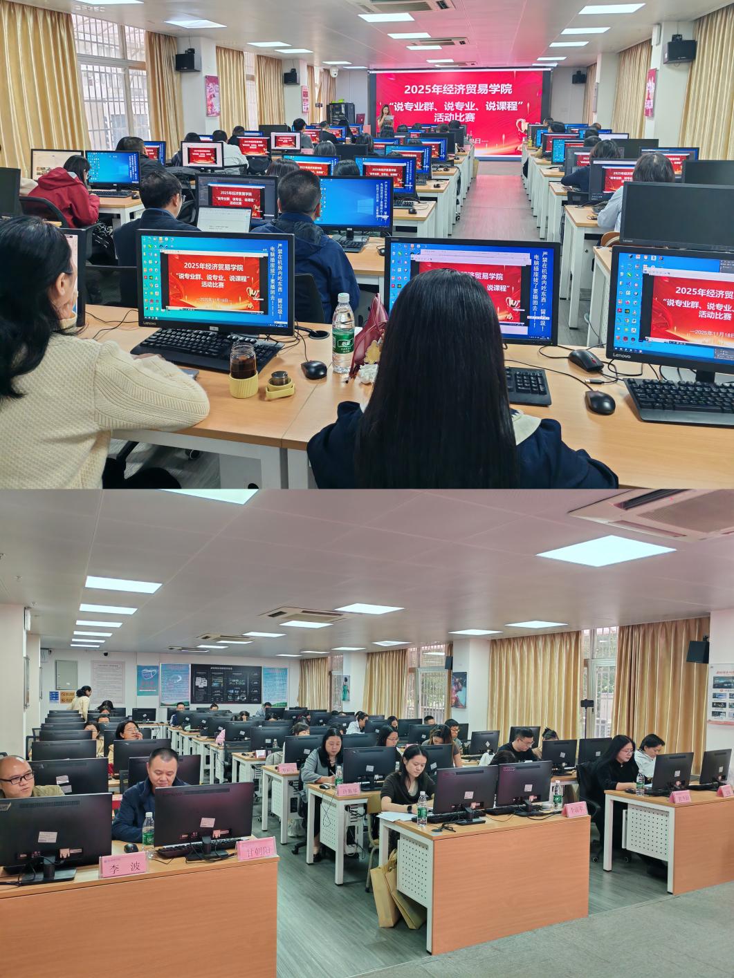 2025年11月18日下午,bat365在线平台官网经济贸易学院“说专业群、说专业、说课程”竞赛在天河校区实训楼202教室举行。活动聚焦深化产教融合、明晰专业与课程建设方向、提升教师教学能力。学院全体专任教师到场观摩学习,夏瑜璟老师担任主持。