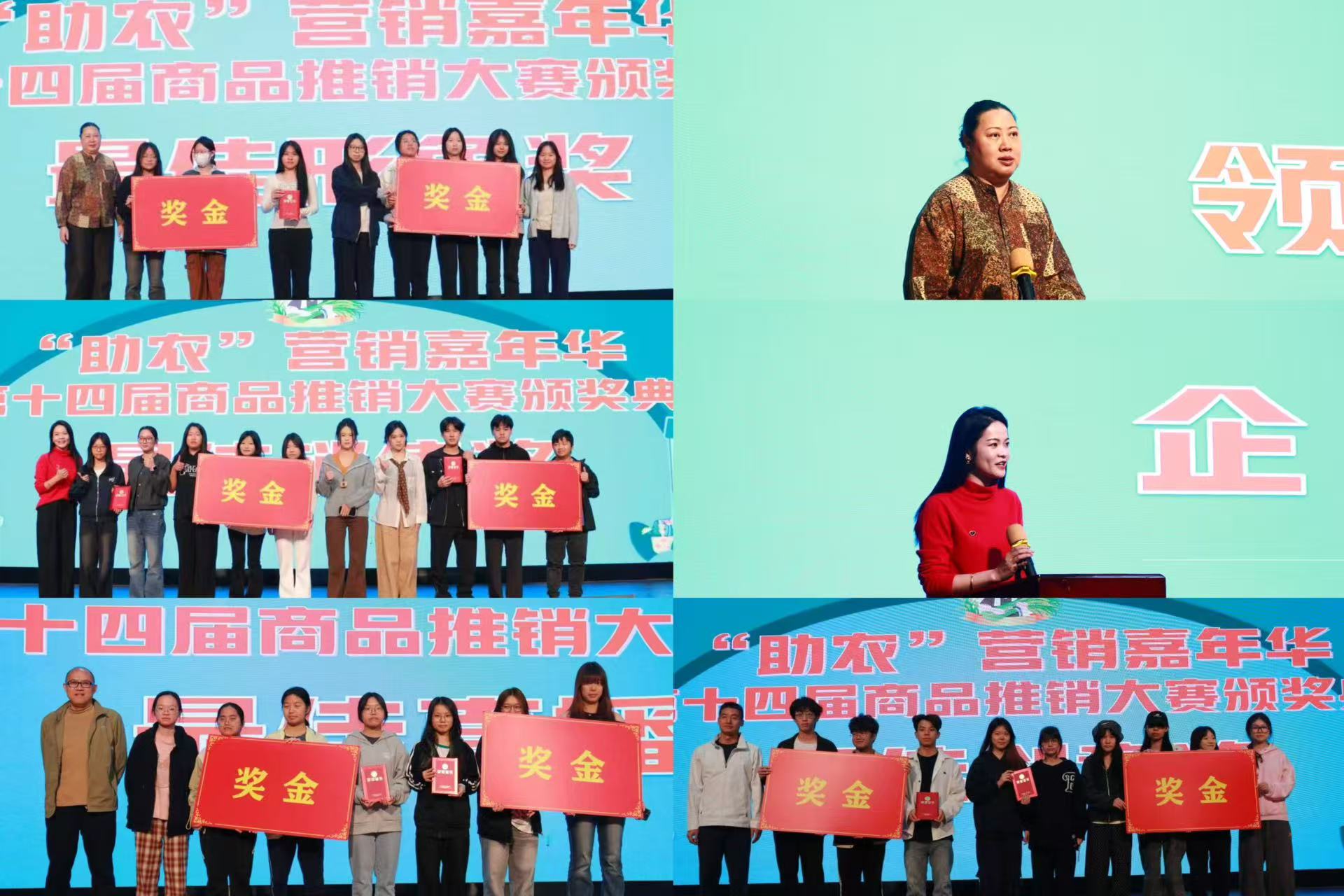2025年11月24日下午,由经济贸易学院主办、广州鲸象跨境电商有限公司协办的“助农”营销嘉年华暨第十四届商品推销大赛闭幕式在明德楼演艺厅举行。本次活动以“助‘双百’贡献青春力量,惠‘三农’销出工贸担当”为核心,彰显了学子服务乡村振兴的责任与创新精神。