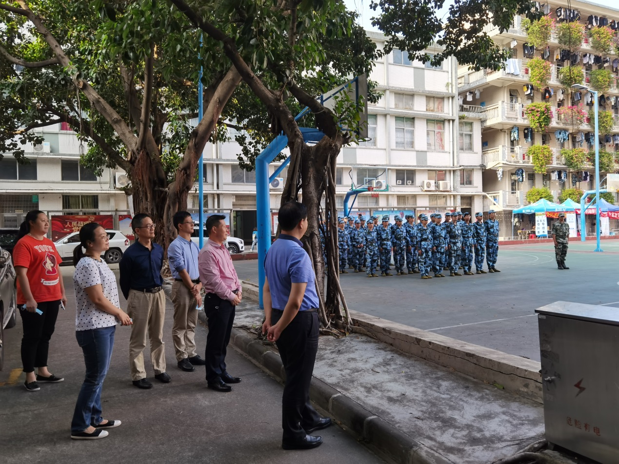 10月22日,学校党委副书记、校长何汉武教授在天河校区检查指导2020级学生军训。学生军训团天河校区负责人程国柱、学校办公室主任吴浩、学生处处长刘建军、计算机学院院长余棉水、体育艺术教学部吴云、学生处副处长许斯华、计算机学院党总支副书记张艳等陪同。